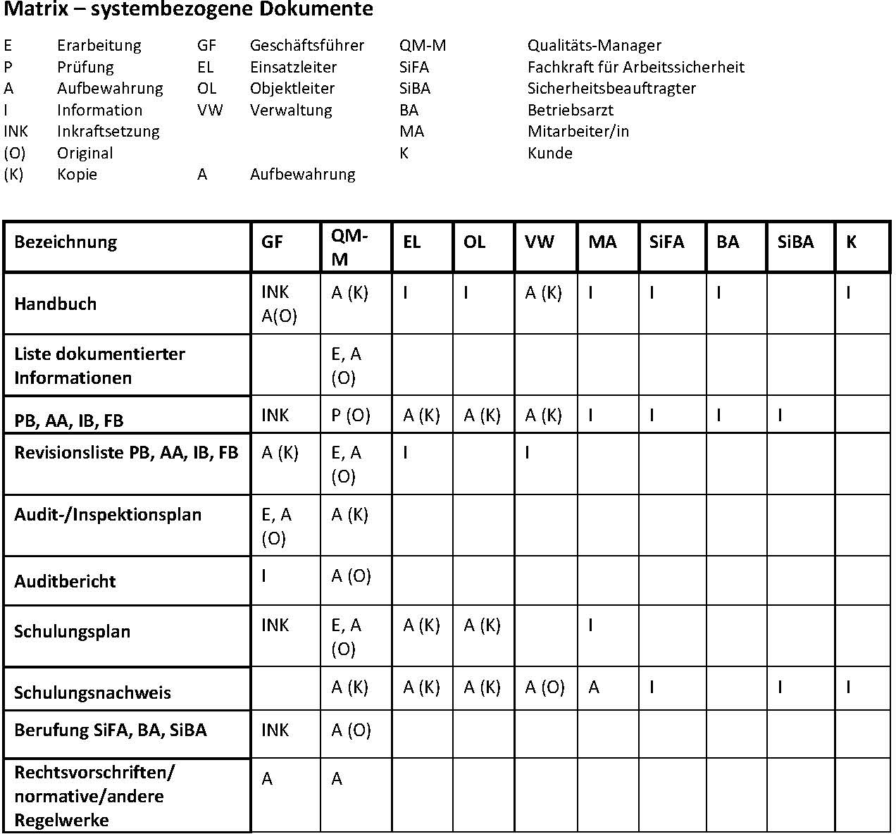 • Die Frist zur Aufbewahrung der Dokumente ist in den Qualitätsaufzeichnungen und in der Dokumentenmatrix festgelegt. Verantw.: siehe Matrix