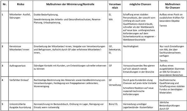 Diese Datei listet alle Risiken und Maßnahmen die zur wirksamen Steuerung des Qualitätsmanagementsystems notwendig sind. Sie ist eines der zentralen Nachweis‐dokumente. Korrekturmaßnahmen werden in einem Report abgearbeitet und im Anschluss im Teil Korrekturmaßnahmen gelistet.